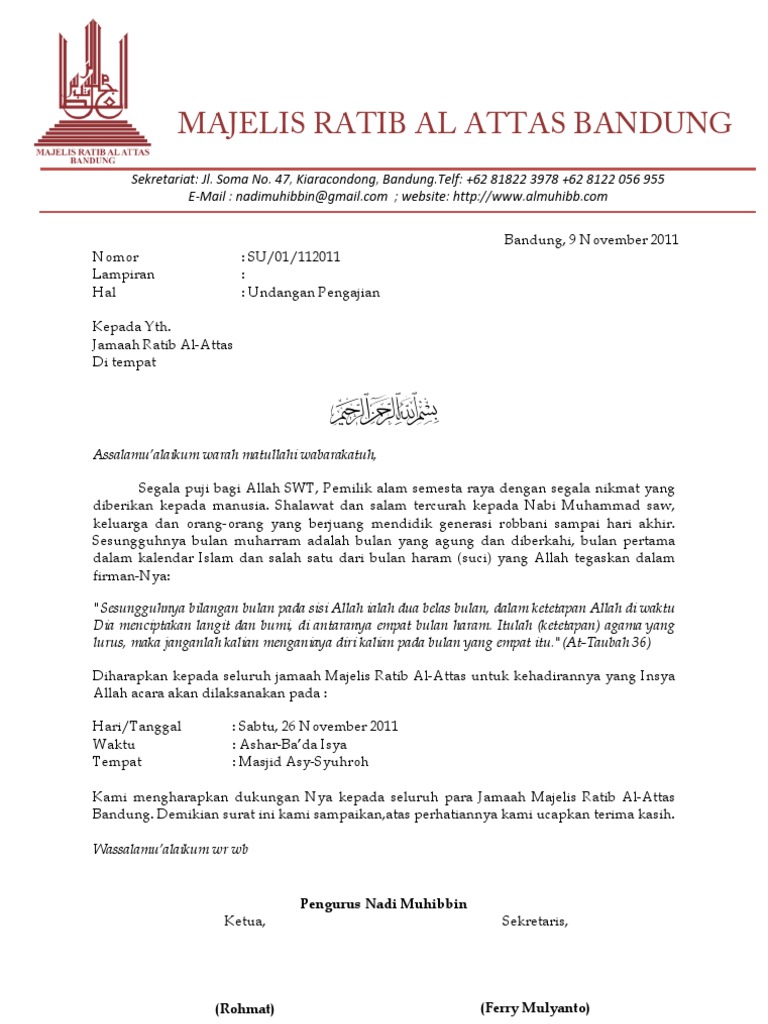 Contoh Surat Undangan Pengajian Pdf / Contoh Undangan Pra Nikah : Download as docx, pdf, txt or read online from scribd.. Please fill this form, we will try to respond as soon as possible. Desa sukosari kec dagangan kab madiun. Tapi yang akan kita bahas kali ini tentang surat undangan pengajian. Dari kedua jenis surat ini mempunyai tujuan tersendiri dan tidak dapat digunakan di sembarang tempat. Contoh surat undangan seminar ini bisa anda temukan dalam 2 buah versi yaitu versi secara resmi dan juga versi yang tidak resmi.